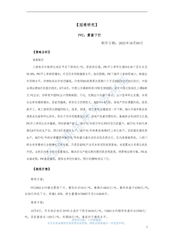 【冠通期货】【202510】PVC:震荡下行-3页