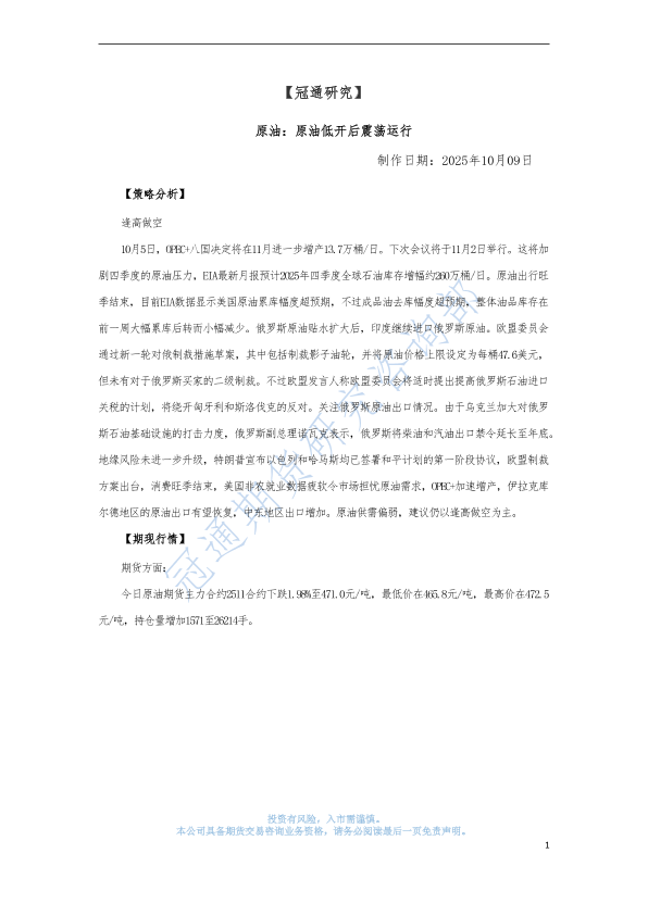 【冠通期货股份有限公司】【202510】原油低开后震荡运行-3页