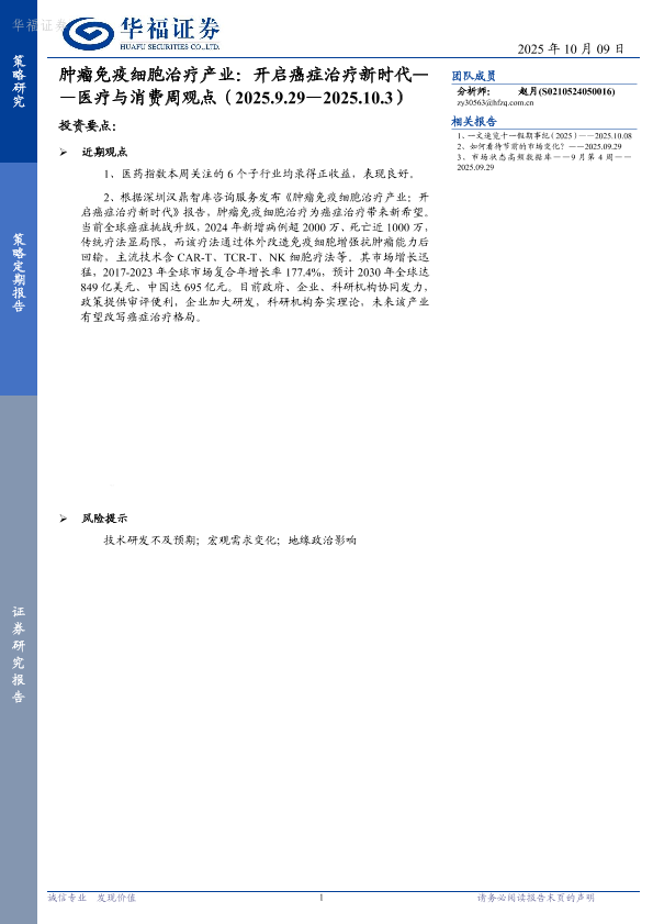 【华福证券】【202510】肿瘤免疫细胞治疗产业:开启癌症治疗新时代— —医疗与消费周观点(2025.9.29—2025.10.3)-7页