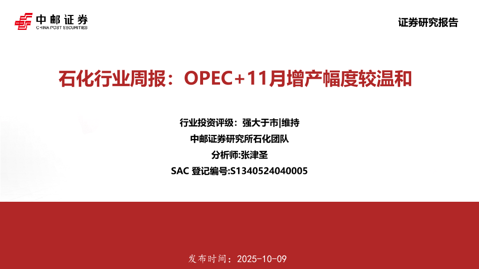 【中邮证券】【202510】石化行业周报:OPEC+11月增产幅度较温和-16页