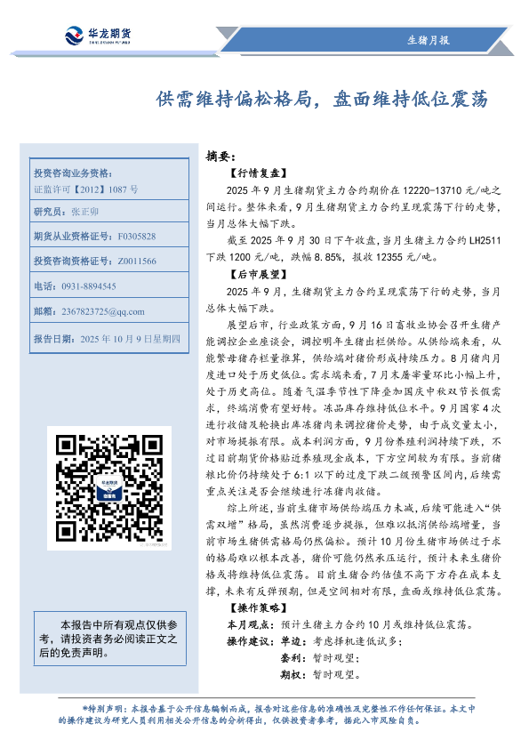 【华龙期货】【202510】生猪月报_供需维持偏松格局_盘面维持低位震荡-22页