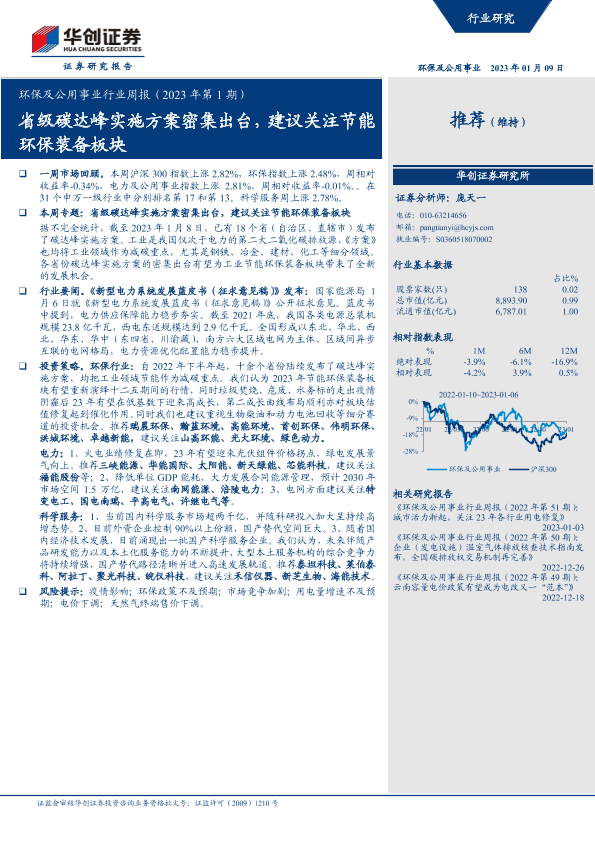【华创证券】【20230109】环保及公用事业行业周报(2023年第1期):省级碳达峰实施方案密集出台,建议关注节能环保装备板块-15页
