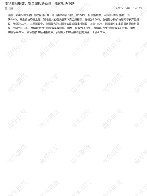 【南华期货】【202510】南华商品指数:贵金属板块领涨,能化板块下跌-2页