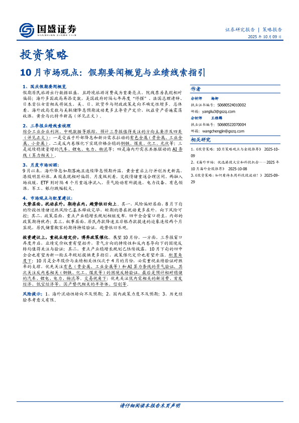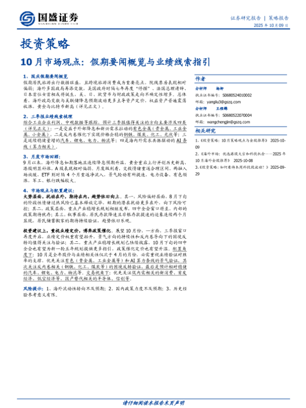 【国盛证券】【202510】10月市场观点:假期要闻概览与业绩线索指引-14页
