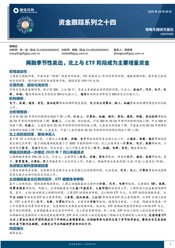 【国金证券】【202509】资金跟踪系列之十四_两融季节性卖出_北上与ETF阶段成为主要增量资金-32页