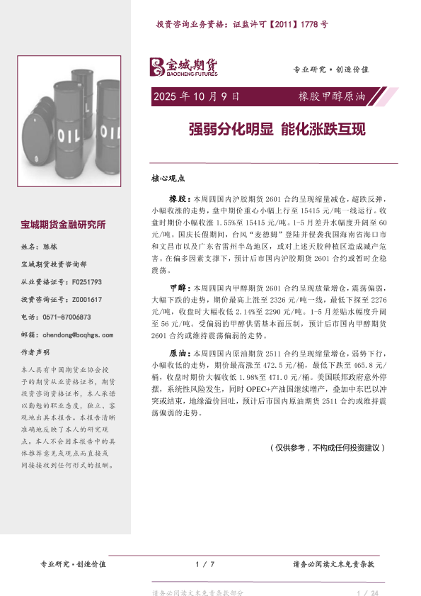 【宝城期货】【202510】橡胶甲醇原油日报_强弱分化明显_能化涨跌互现-7页
