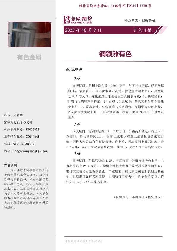 【宝城期货投资咨询部】【202510】铜领涨有色-6页