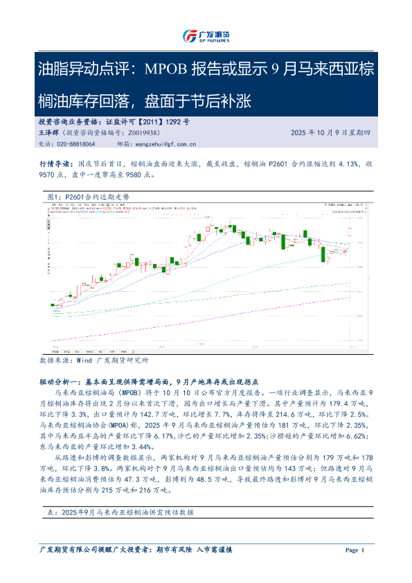 【广发期货】【202510】油脂异动点评:MPOB报告或显示9月马来西亚棕榈油库存回落,盘面于节后补涨-4页