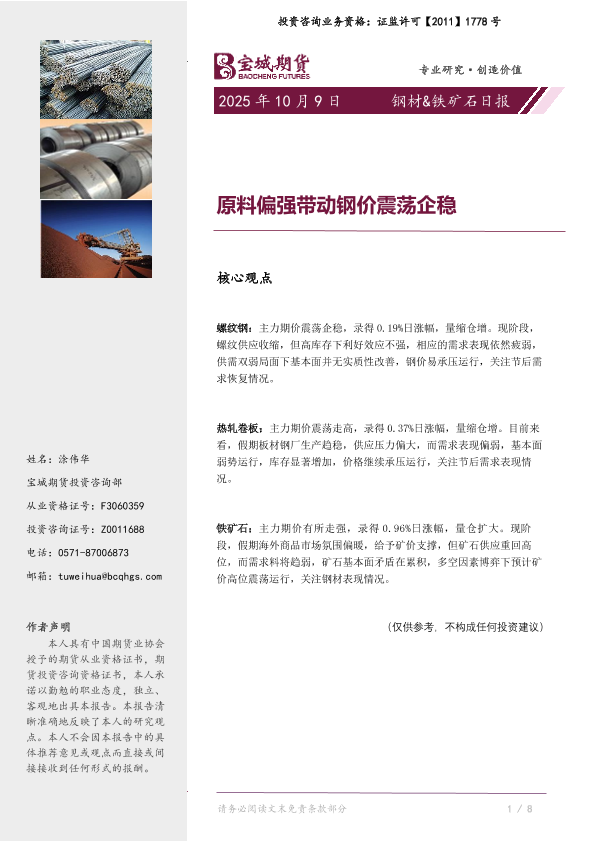 【宝城期货投资咨询部】【202510】钢材&铁矿石 | 日报-7页