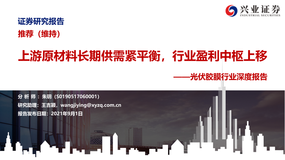 【兴业证券】【20210901】光伏胶膜行业深度报告:上游原材料长期供需紧平衡,行业盈利中枢上移-35页