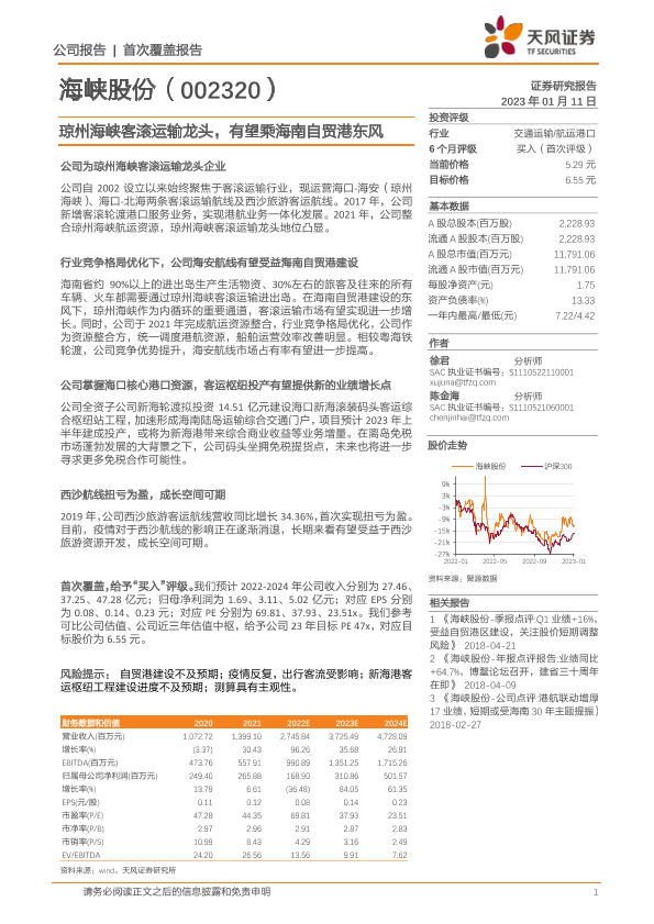 【天风证券】【20230111】琼州海峡客滚运输龙头,有望乘海南自贸港东风-18页