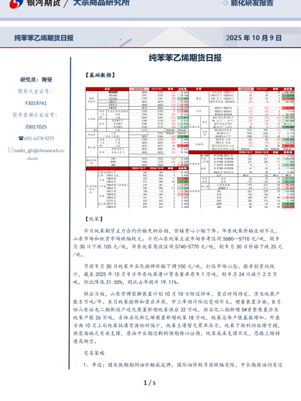 【银河期货】【202510】纯苯苯乙烯期货日报-5页