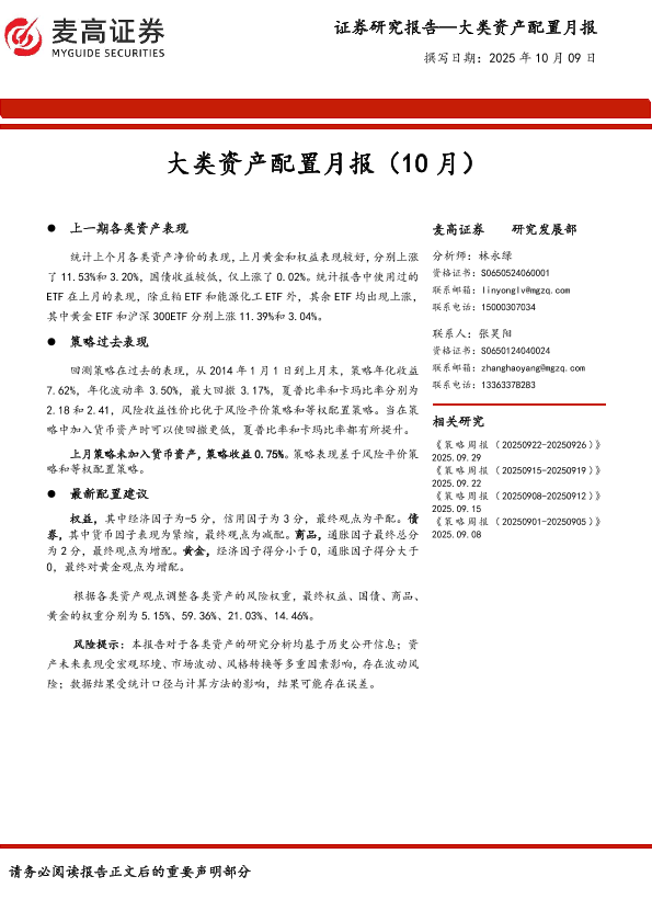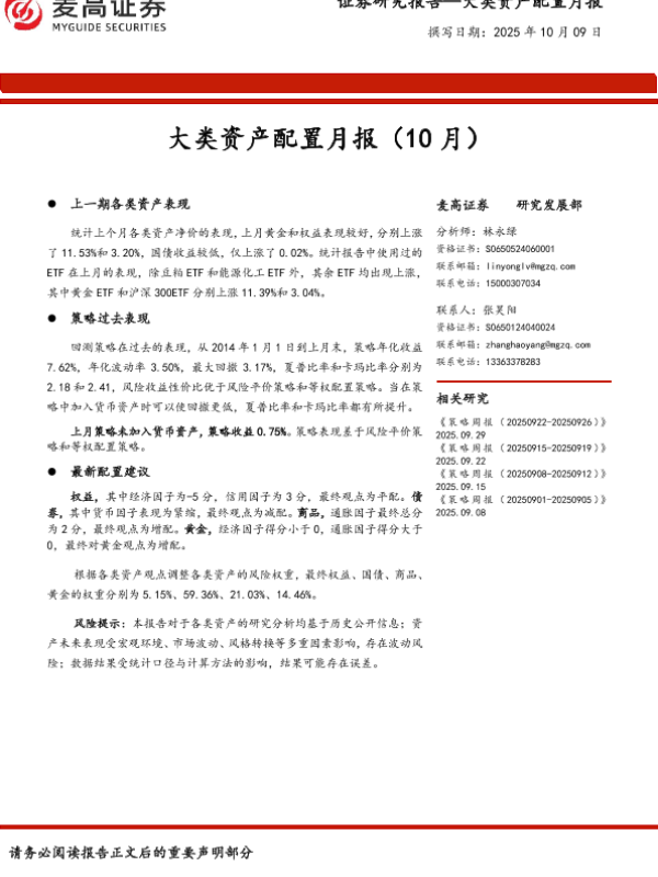 【麦高证券】【202510】大类资产配置月报(10月)-11页