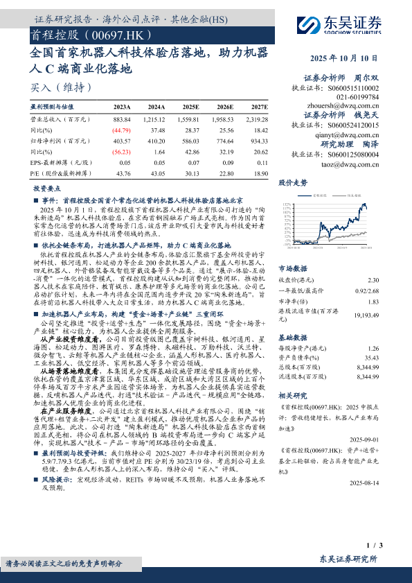 【东吴证券】【202510】全国首家机器人科技体验店落地,助力机器人 C端商业化落地-3页