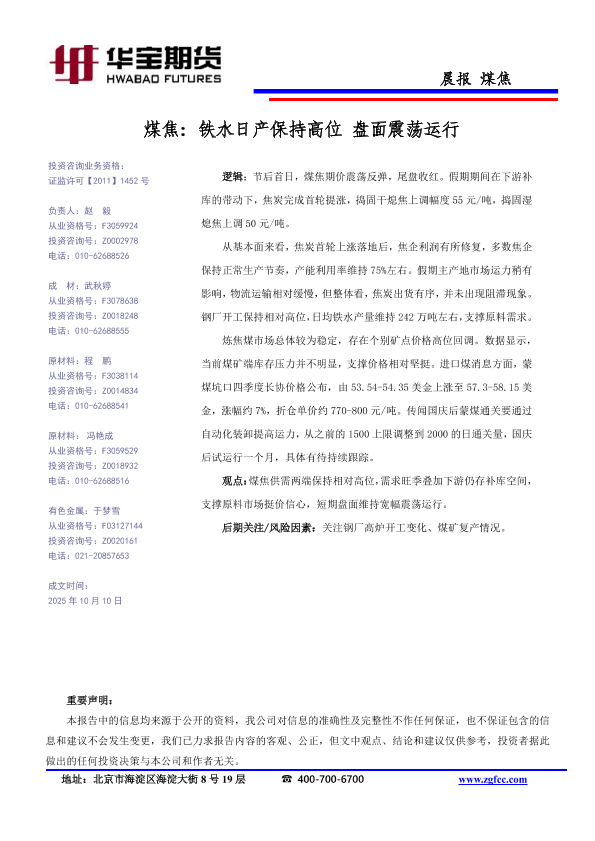【华宝期货】【202510】煤焦_铁水日产保持高位_盘面震荡运行-1页