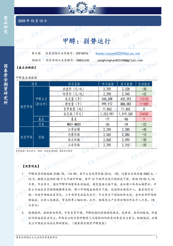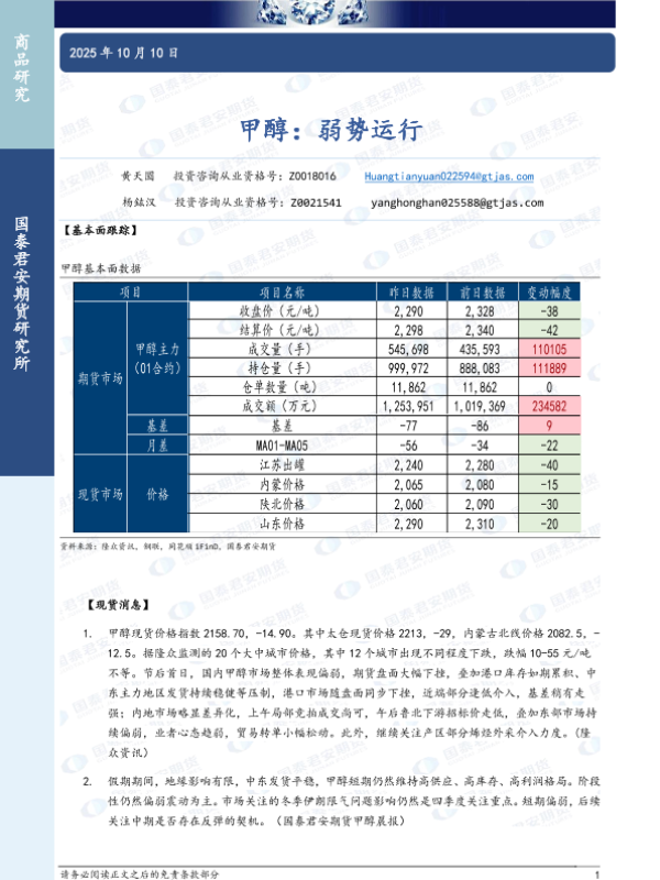 【国泰君安期货】【202510】甲醇:弱势运行-3页