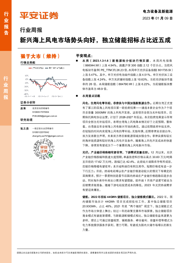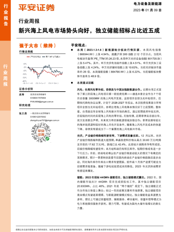 【平安证券】【20230109】电力设备及新能源行业周报:新兴海上风电市场势头向好,独立储能招标占比近五成-26页
