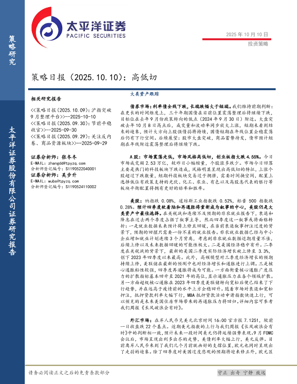 【太平洋证券】【202510】策略日报(2025.10.10):高低切-13页