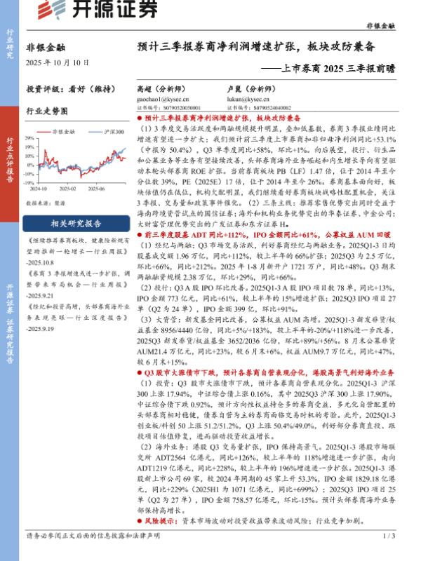 【开源证券】【202510】上市券商2025三季报前瞻:预计三季报券商净利润增速扩张,板块攻防兼备-3页