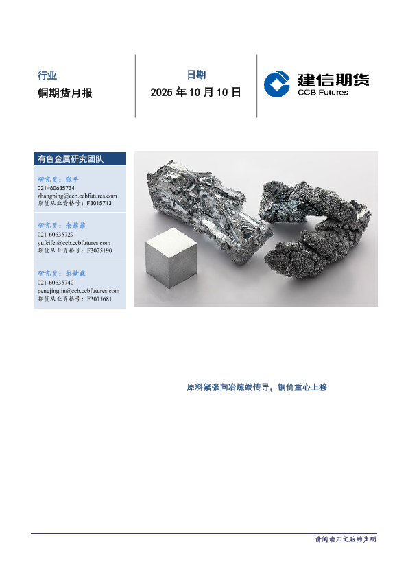 【建信期货】【202510】铜期货月报_原料紧张向冶炼端传导_铜价重心上移-12页