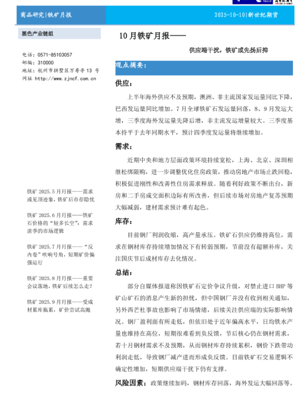 【新世纪期货】【202510】10月铁矿月报——供应端干扰,铁矿或先扬后抑-12页