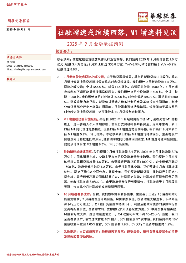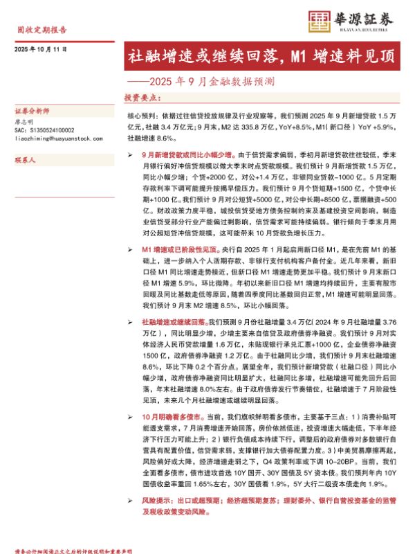 【华源证券】【202510】社融增速或继续回落,M1增速料见顶——2025年9月金融数据预测-4页