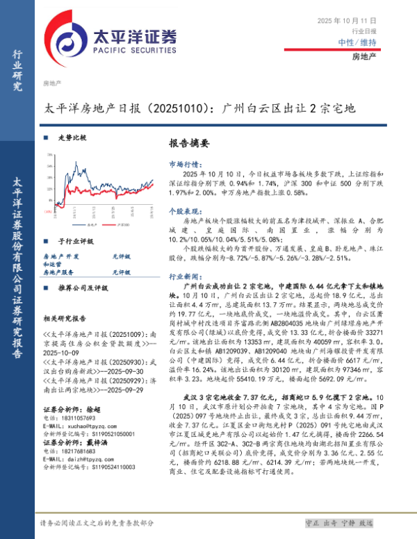 【太平洋证券】【202510】太平洋地产日报(20251010):广州白云区出让 2宗宅地-4页