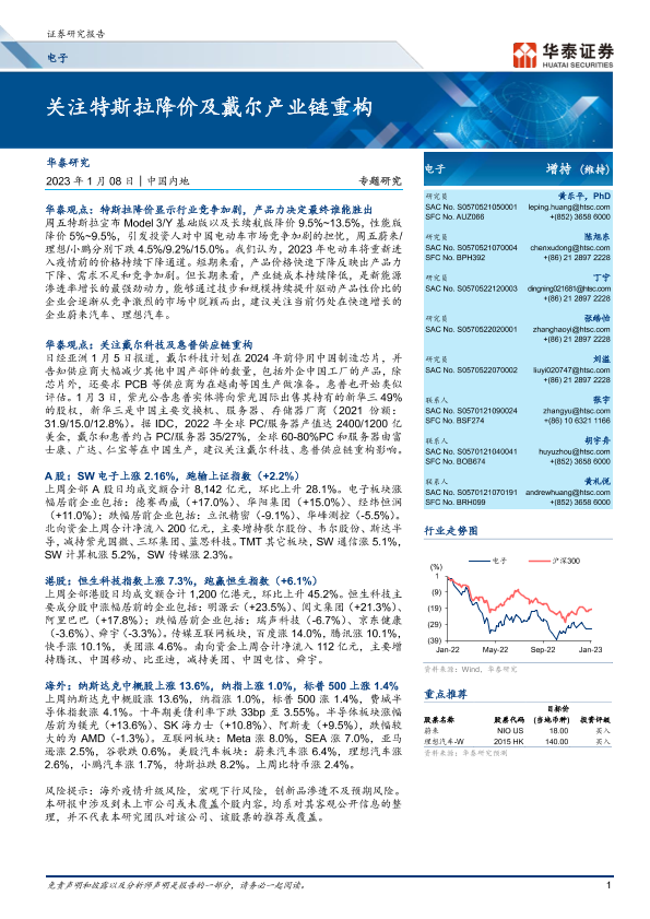【华泰证券】【20230108】电子行业专题研究:关注特斯拉降价及戴尔产业链重构-27页