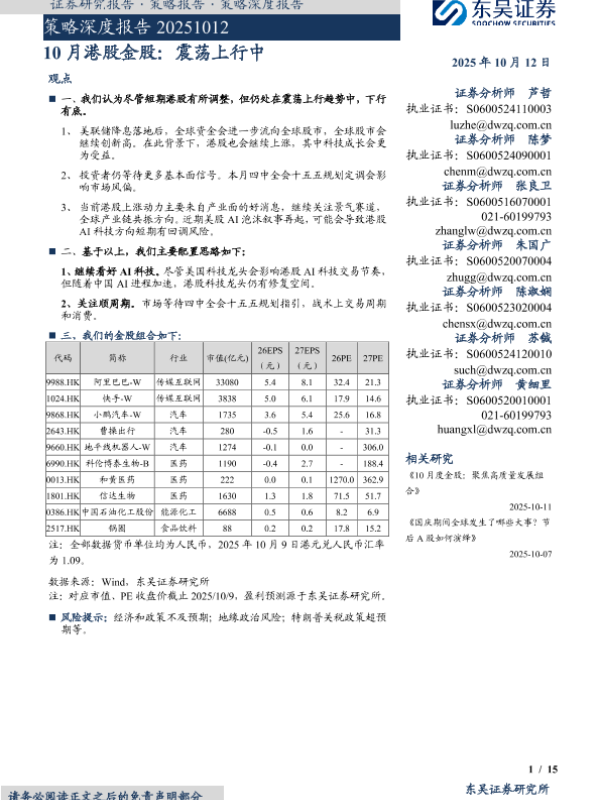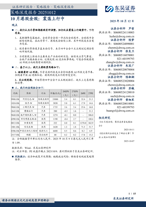 【东吴证券】【202510】10月港股金股:震荡上行中-15页