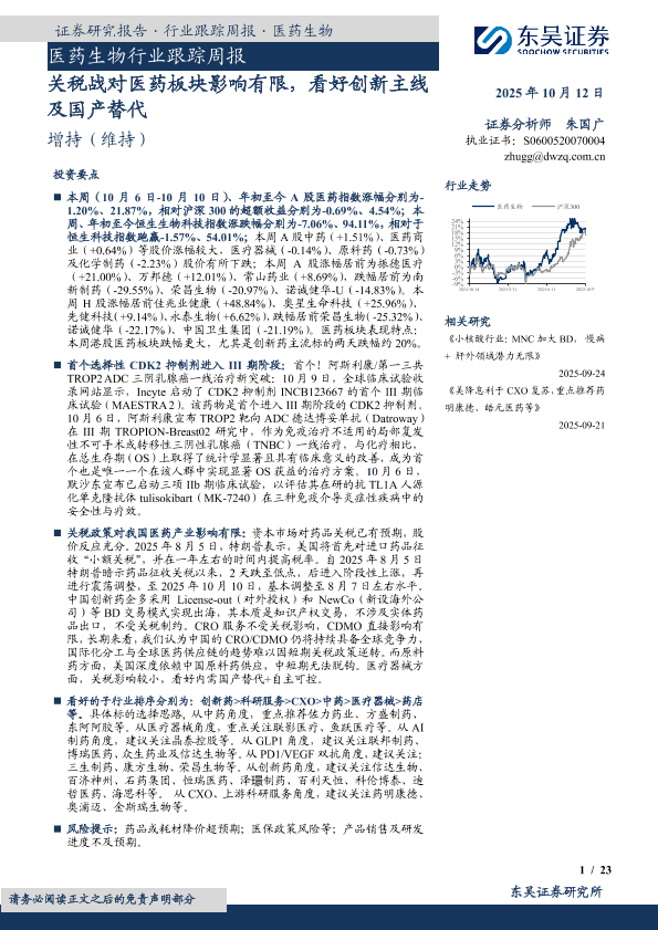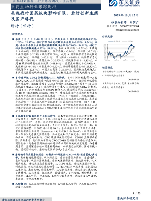 【东吴证券】【202510】关税战对医药板块影响有限,看好创新主线及国产替代-23页