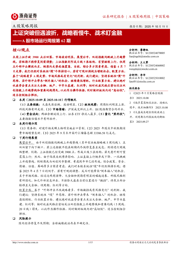 【浙商证券】【202510】上证突破但遇波折,战略看慢牛、战术盯金融-15页