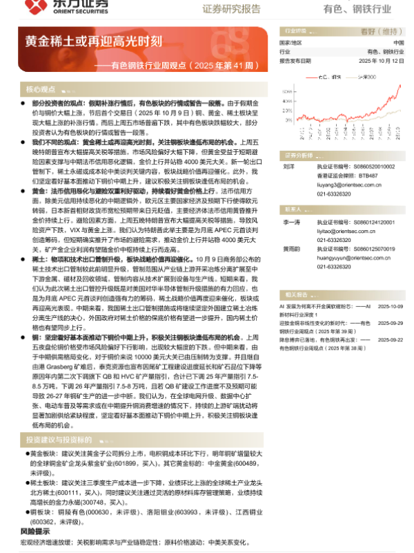 【东方证券】【202510】有色钢铁行业周报 ——黄金稀土或再迎高光时刻-24页