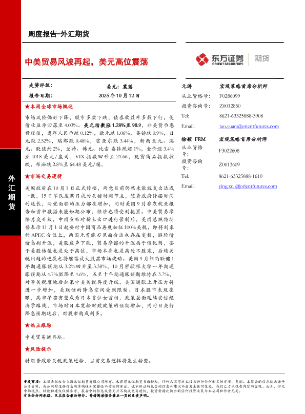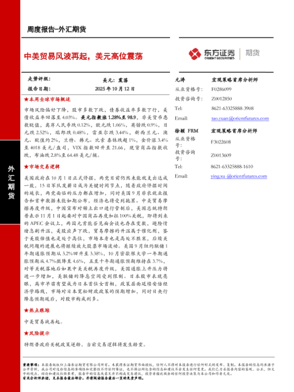 【东证期货】【202510】中美贸易风波再起,美元高位震荡-12页