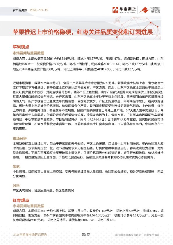 苹果 价格分析 农产品报告 期货市场 红枣