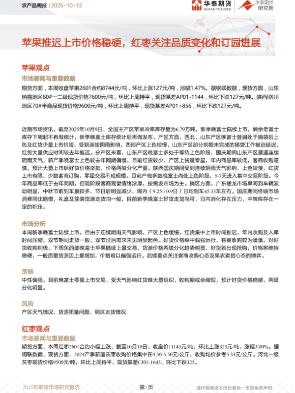 【华泰期货】【202510】农产品周报 | 2025-10-12-10页