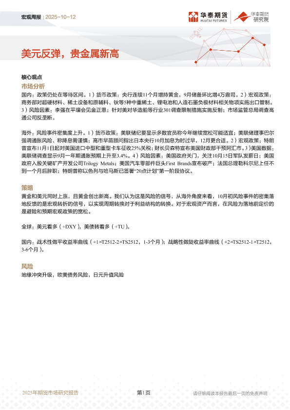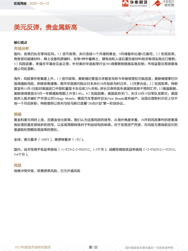 【华泰期货】【202510】宏观周报 | 美元反弹,贵金属新高-13页