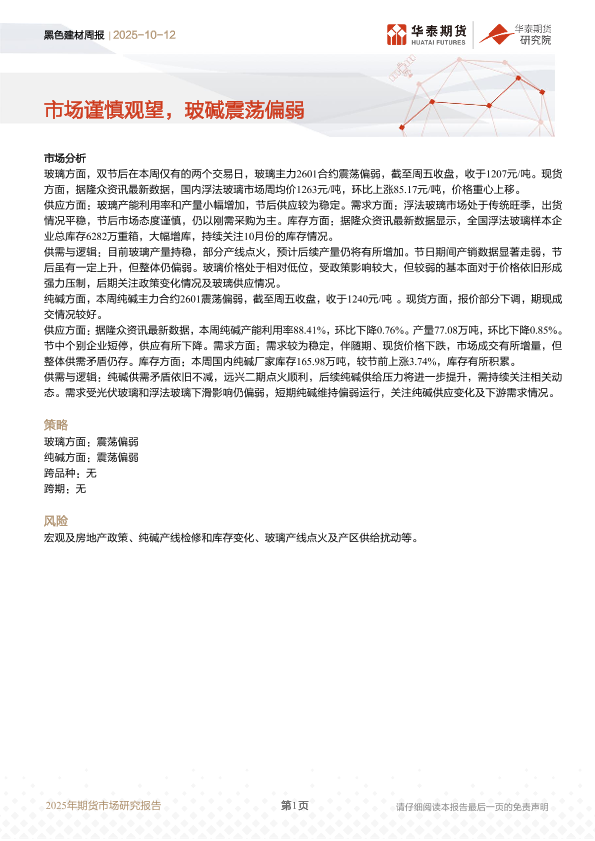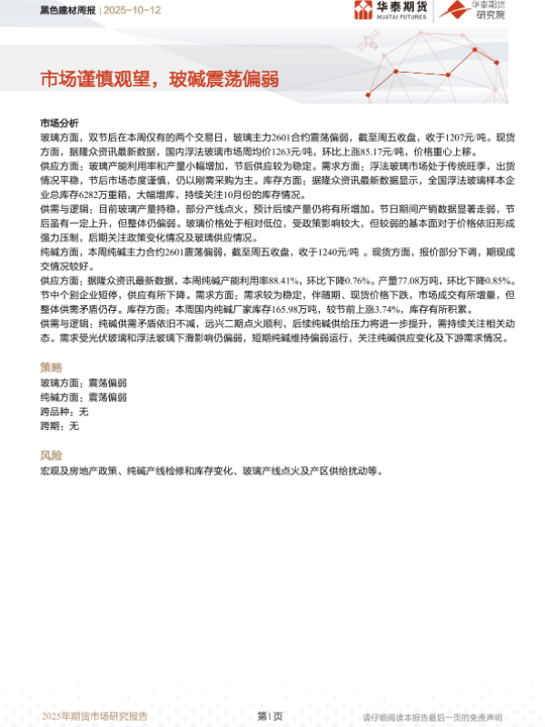 【华泰期货】【202510】黑色建材周报 | 市场谨慎观望,玻碱震荡偏弱-9页