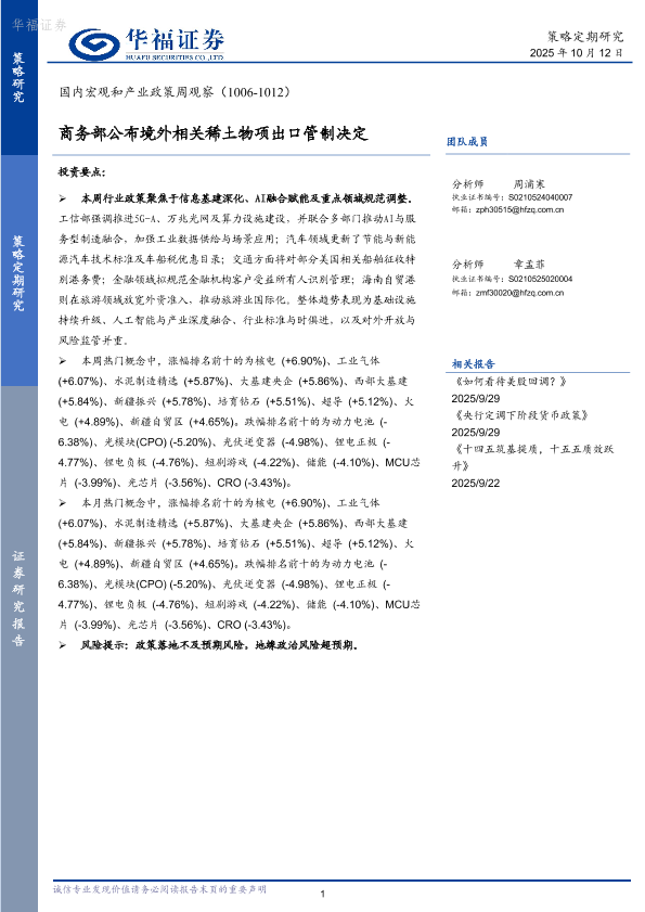 基建投资 政策观察 稀土出口管制 人工智能 行业分析