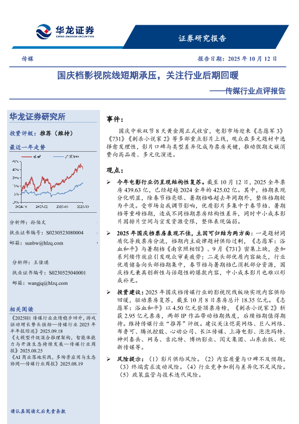 【华龙证券】【202510】国庆档影视院线短期承压,关注行业后期回暖-7页