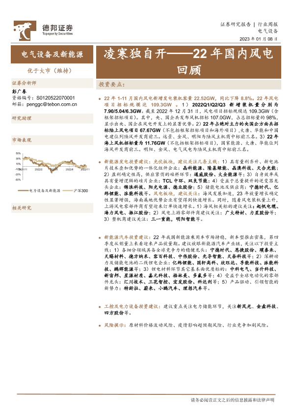 【德邦证券】【20230108】电气设备及新能源22年国内风电回顾:凌寒独自开-15页