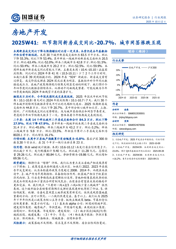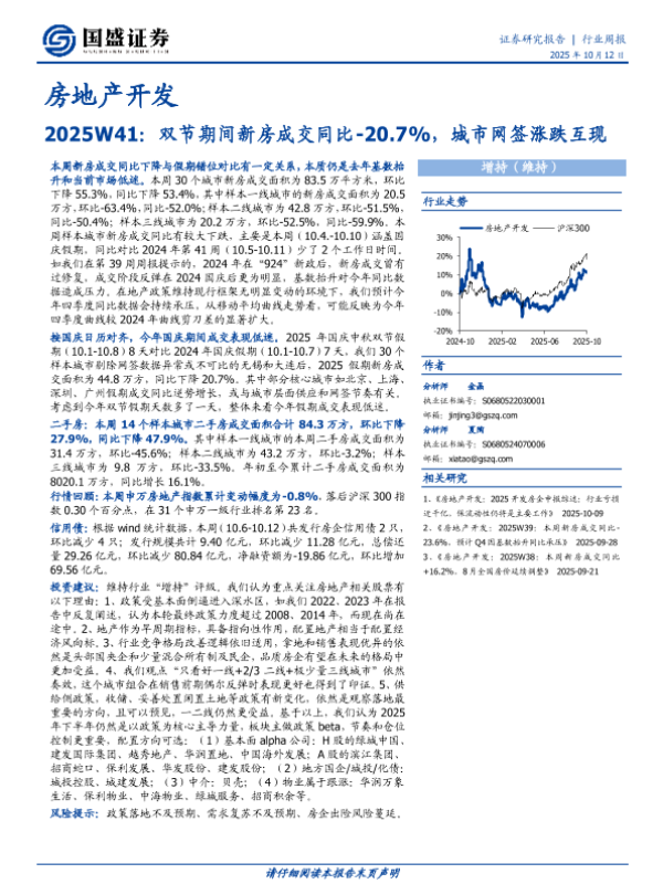 【国盛证券】【202510】2025W41:双节期间新房成交同比-20.7%,城市网签涨跌互现-15页