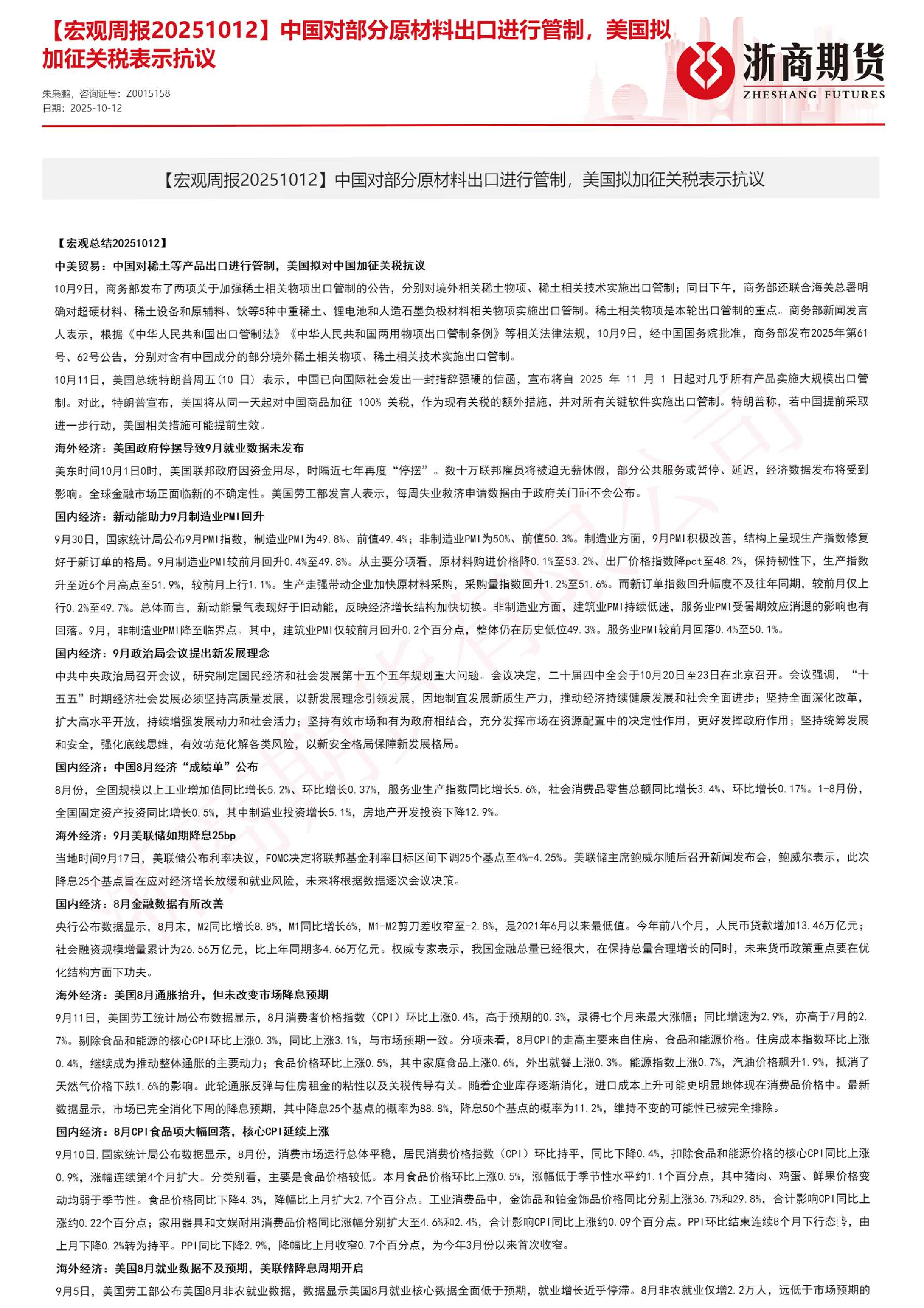 【浙商期货】【202510】中国对部分原材料出口进行管制 ,美国拟加征关税表示抗议-11页