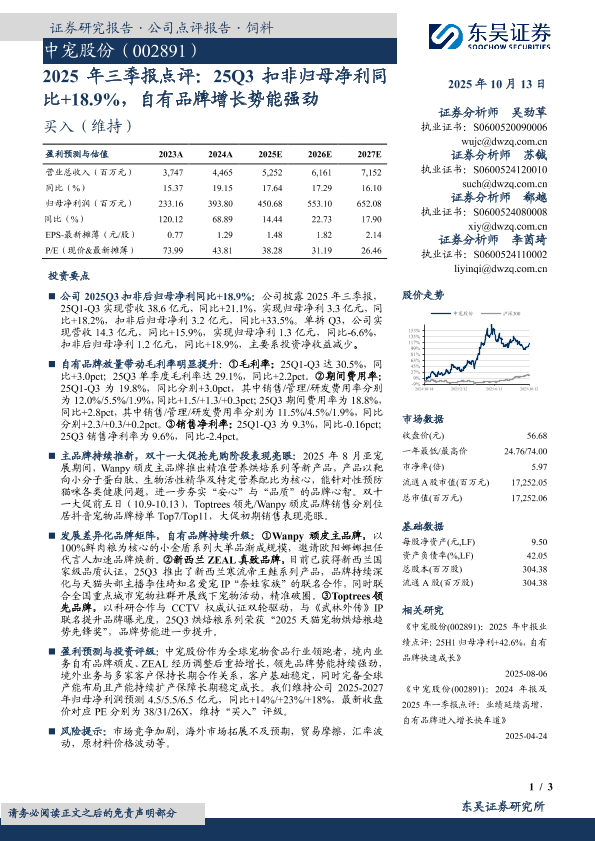 自有品牌 投资评级 财报点评 营销策略 宠物食品