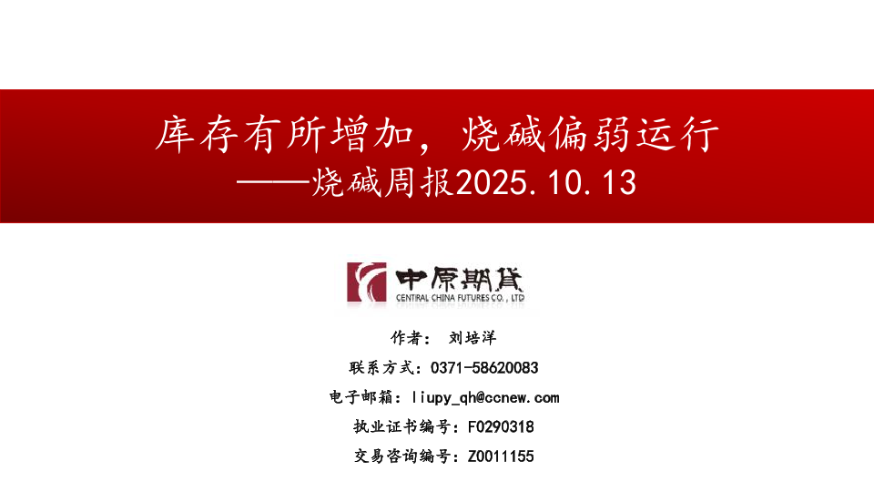 【中原期货】【202510】库存有所增加,烧碱偏弱运行-18页