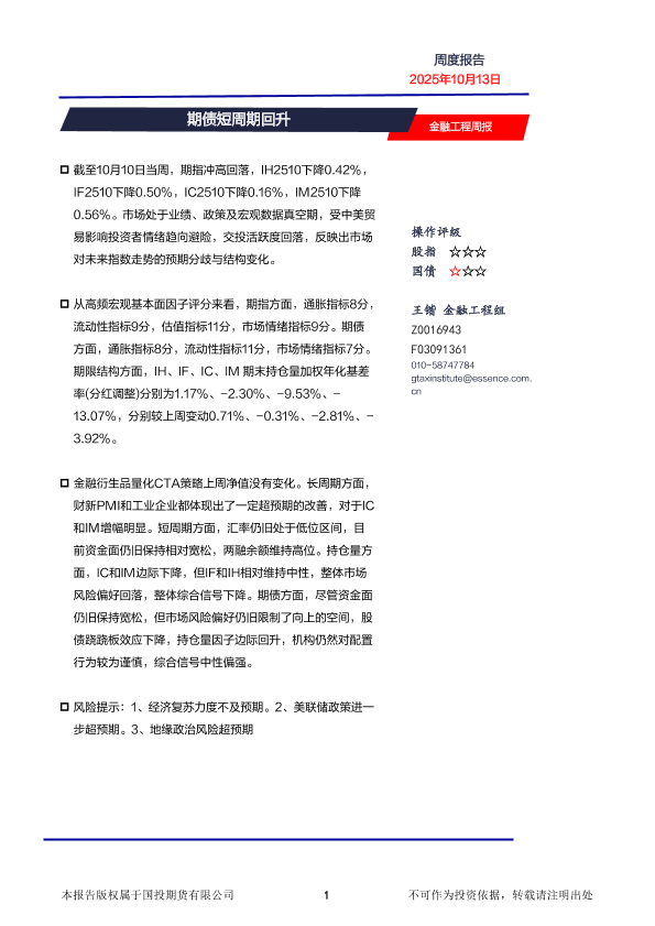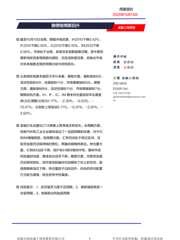 【国投期货有限公司】【202510】金融工程周报-8页