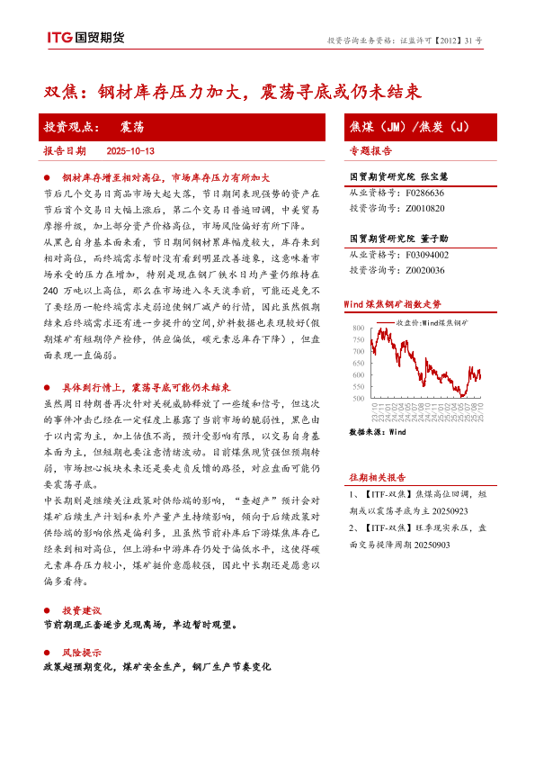 【国贸期货】【202510】双焦:钢材库存压力加大,震荡寻底或仍未结束-13页