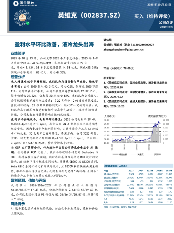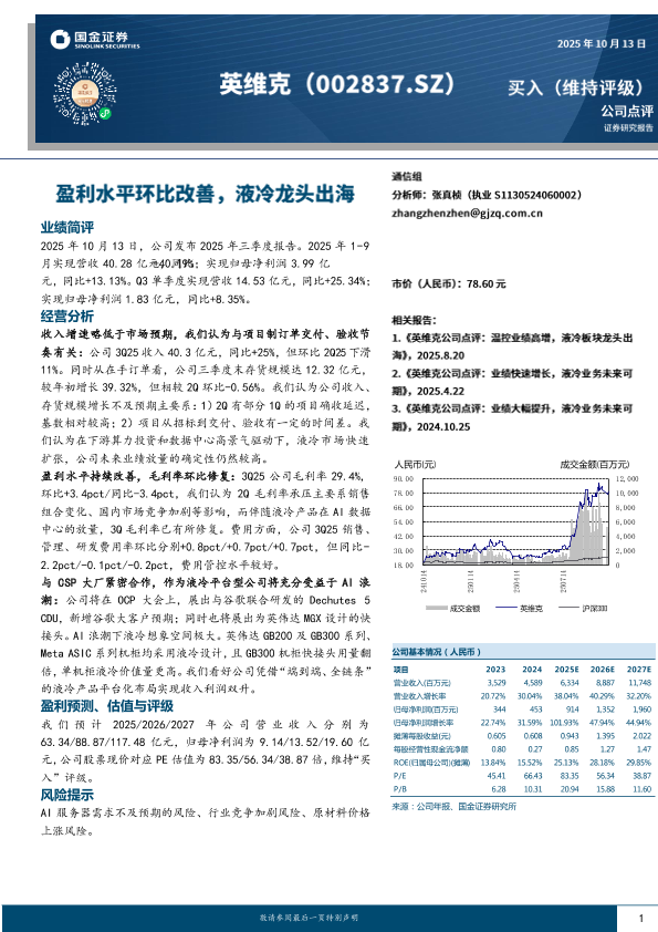 【国金证券】【202510】英维克-002837.SZ-盈利水平环比改善_液冷龙头出海-4页