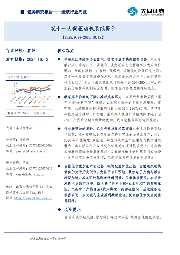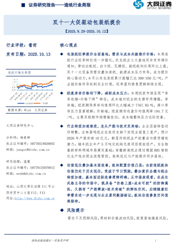 【大同证券】【202510】造纸行业周报-9页