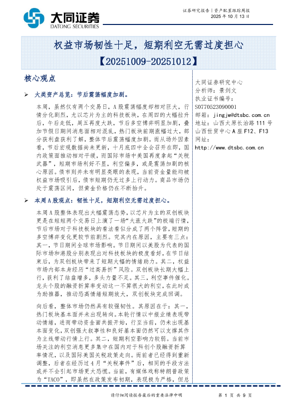【大同证券】【202510】权益市场韧性十足,短期利空无需过度担心-9页