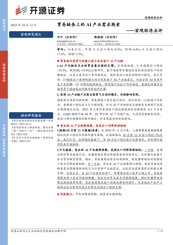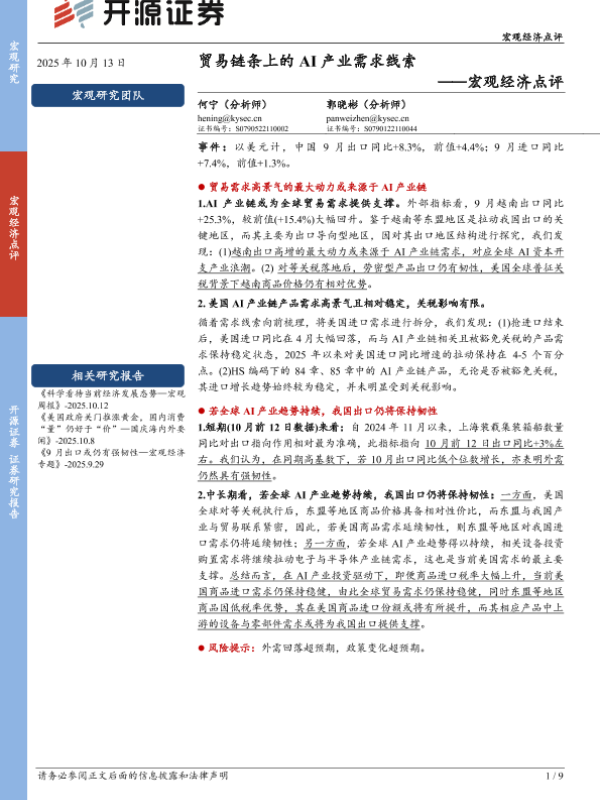 【开源证券】【202510】贸易链条上的 AI产业需求线索 ——宏观经济点评-9页